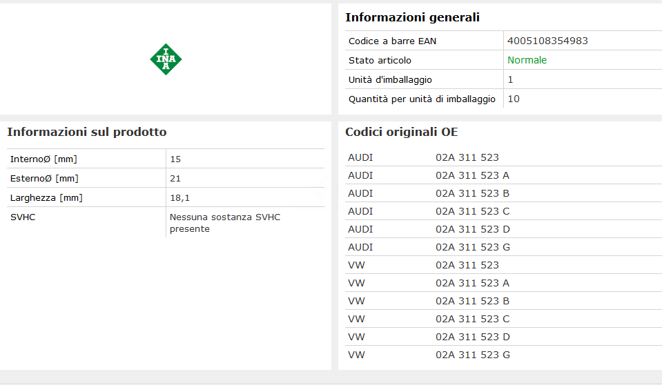 | Descrizione | Cuscinetto combinato, cuscinetto automobilistico |